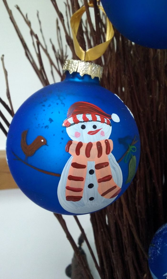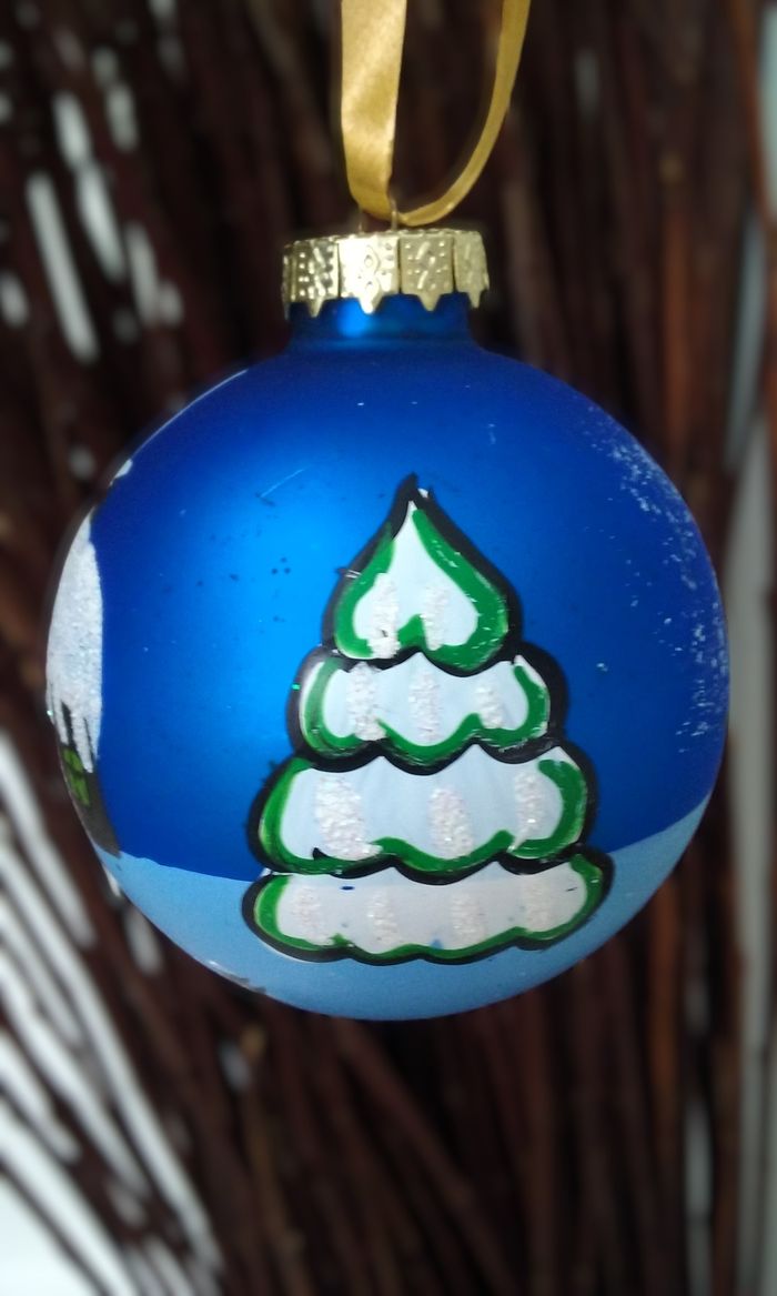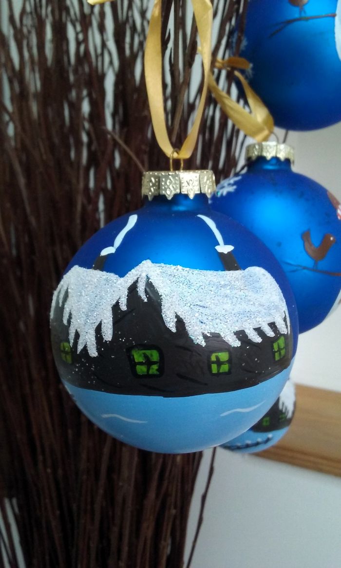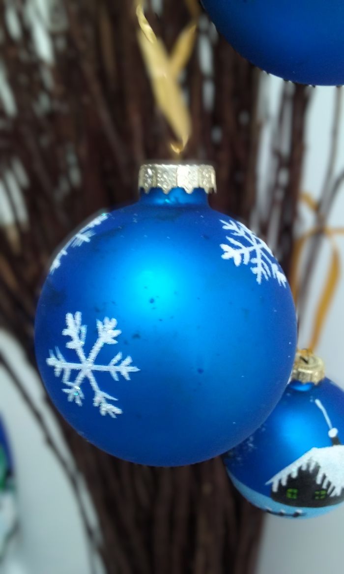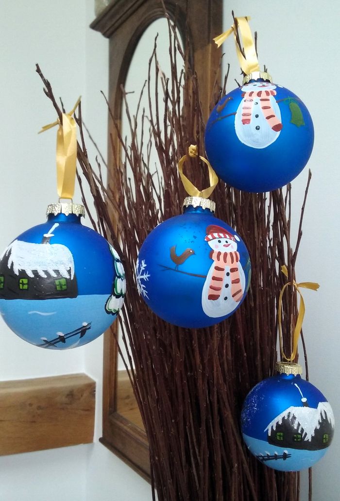 4 boules en verre décorées de 70 mm, peintes à la main par La ligne Imaginoël.