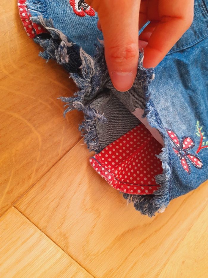 Salopette short en jean, broderies, franges. #ce21bébé #ce21_6mois . Liste de tous mes liens bien classés dispo dans mon profil, bonne visite 😉