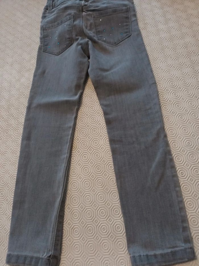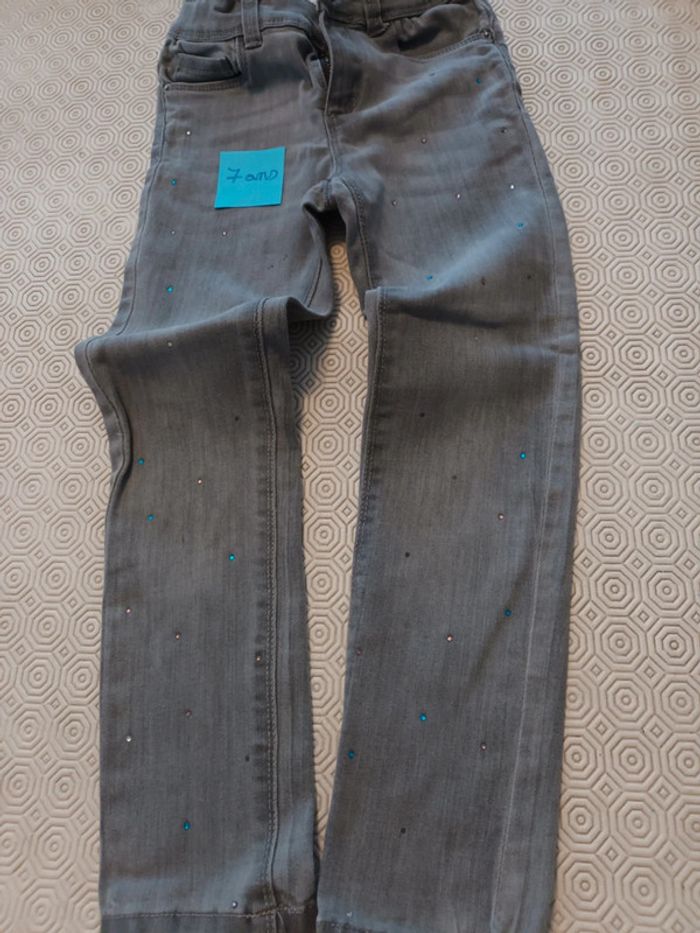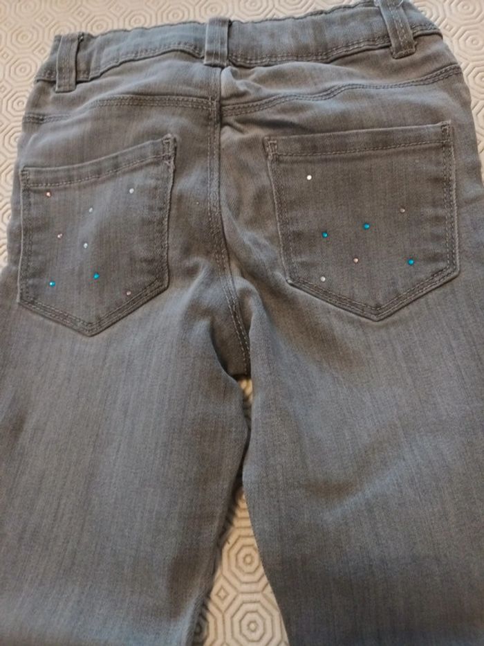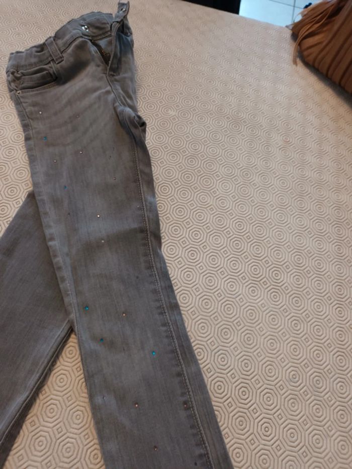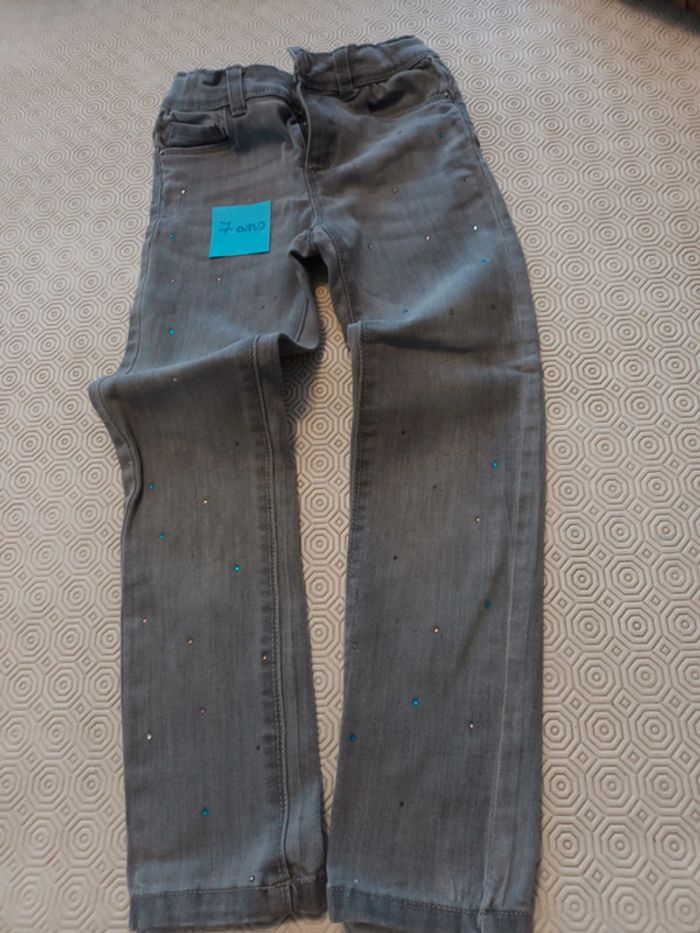 Jean kiabi skinny 7 ans gris avec petites perles . Peut se resserer a la taille en bon état