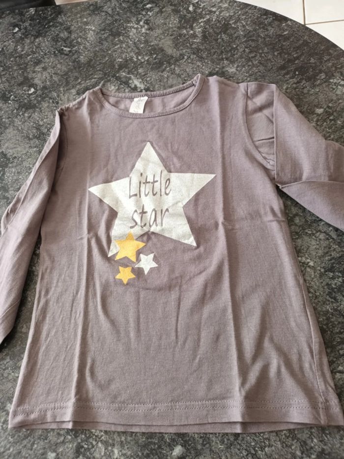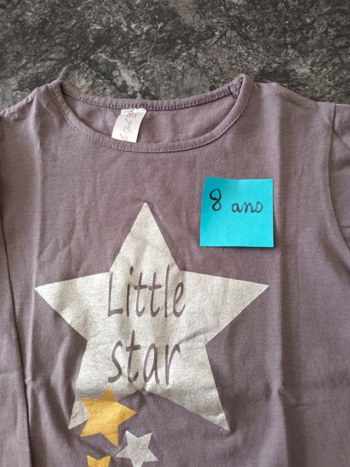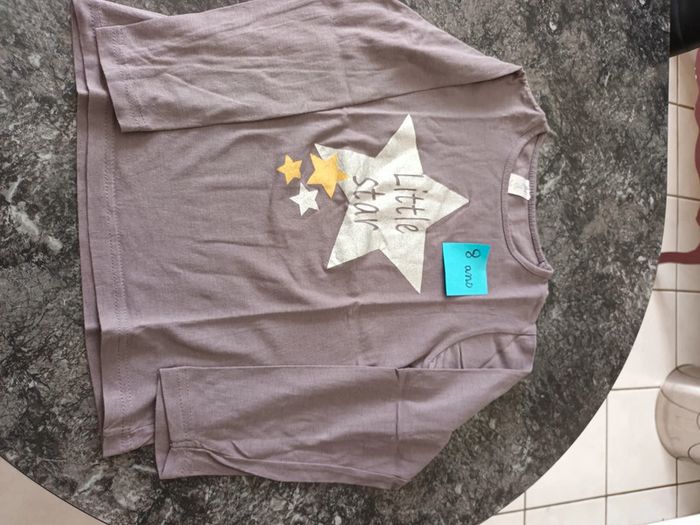 Tee-shirt manches longues 8 ans gris motif étoile.bon état.