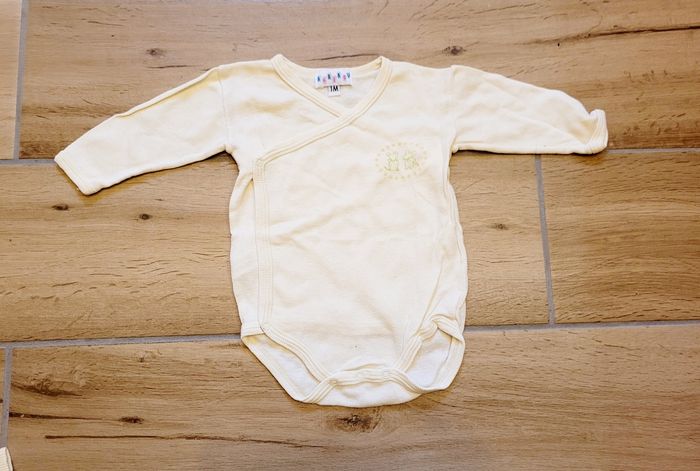 Lot de 3 bodys manches longues en coton, les jaunes sont en 1 mois, le blanc naissance.