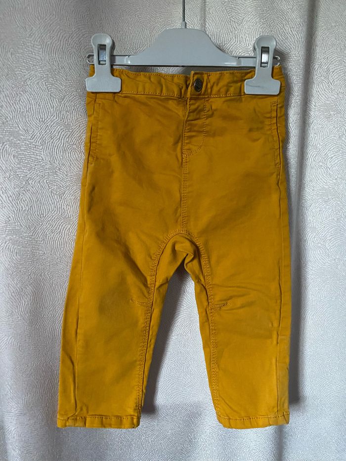 2 pantalons réglable à la ceinture coton elasthane Taille 18 mois 81 cm Un jaune ocre un peu saroual Orchestra Un bleu marine avec revers kiabi