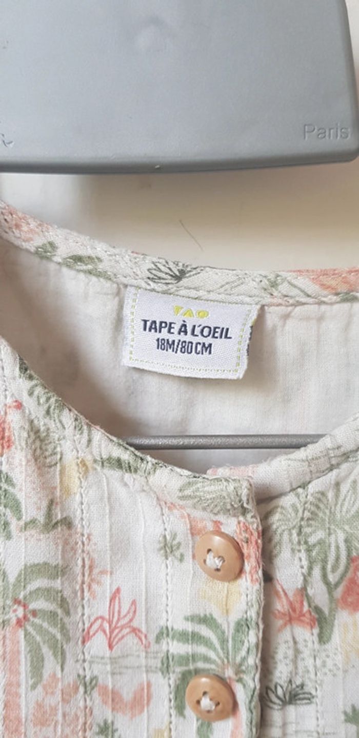 Très belle blouse de marque tape à l'oeil. Taille 18 mois. Ouverture avec boutons pression à l'avant. Très bon état