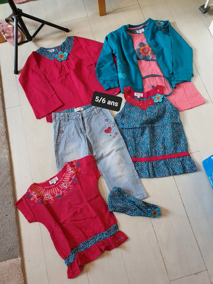 🛑 Merci de lire la description ⤵️ Très bon état Tout en 6 ans sauf pantalon 7/8e (ou pantacourt) et blouse manches longues rose qui sont un 5 ans qui taille plutôt grand je trouve Mes ventes 6 ans  ↩ #CoralyynejeanneSixansfille 🔻 Penser à consulter 👀 mon "À propos" ; vous y trouverez diverses infos concernant les ventes (Mon dressing est classé grâce aux Hashtag # ) & les envois (Délais&Transporteurs) Merci 🙏.