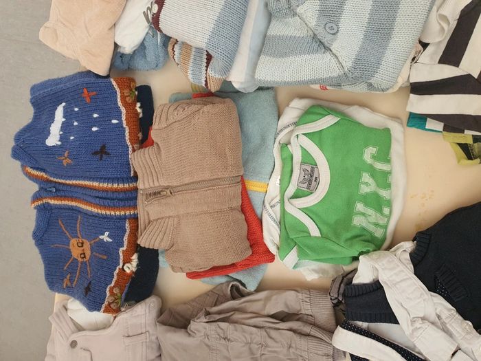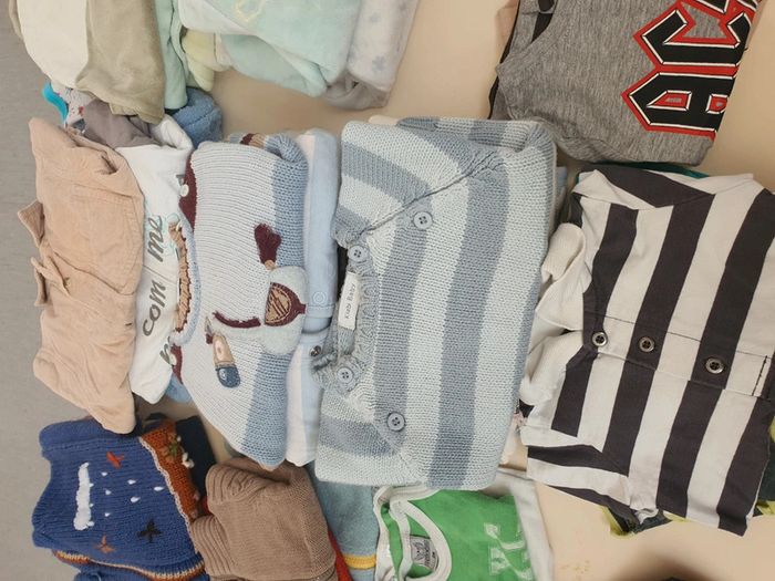 Lot 3 mois environ 35 pièces dont un ensemble cérémonie tape à l'œil (chemise Gilet cravate)