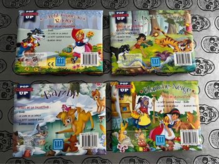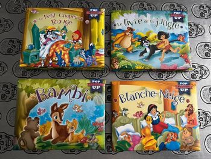 Lot de 4 livres pop up miniclassiques Bambi Le chaperon rouge Le livre de la jungle Blanche neige Ce sont des livres en 3D à l ouverture (voir photo) Ils sont fragiles, un à été recollé sur un petit morceau voir dernière photo #vanoelinelivres