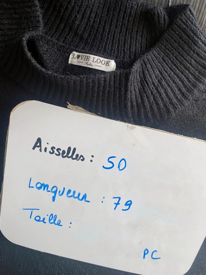 pull noir jamais porté aisselles 50 longueur 79 taille jusqu’à 44-46 #vanoelinefemme