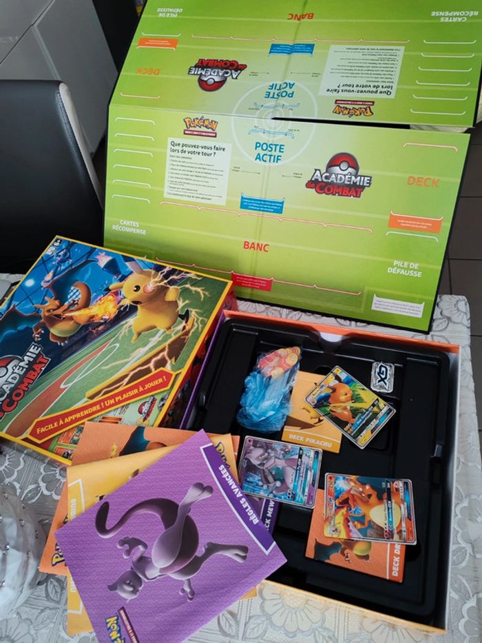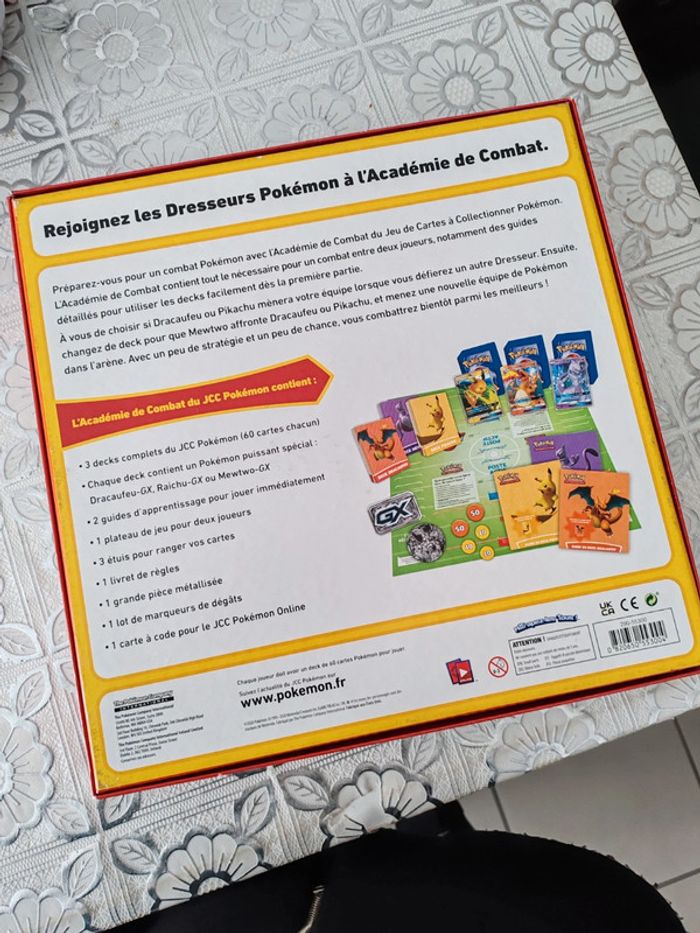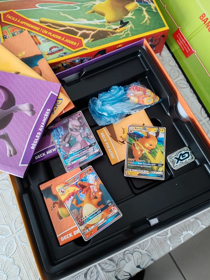 Jeu en excellent état Complet Nombre de joueurs : 2 • Apprenez à jouer à Pokémon en famille avec ce jeu d'initiation Pokémon ! • Cette boîte est une véritable aubaine pour les joueurs néophytes, adultes comme enfant. Elle a été conçue comme un jeu de société, avec un matériel de qualité, pour apprendre à jouer à Pokémon en famille • Trois decks de 40 cartes, accompagnés de livrets explicatifs, permettent de faire les premiers pas et de se lancer dans des parties endiablées ! • Un cadeau idéal pour tous les fans de Pokémon ! • A partir de 6 ans 30,5 x 7,4 x 30,5 cm; 1 kilogramme Valeur : 70 €.