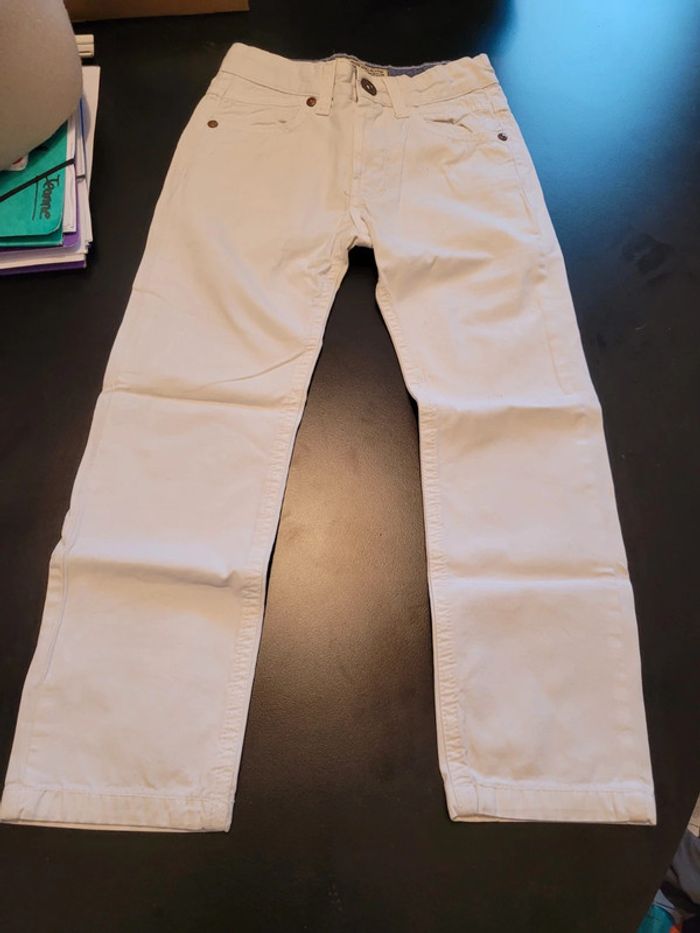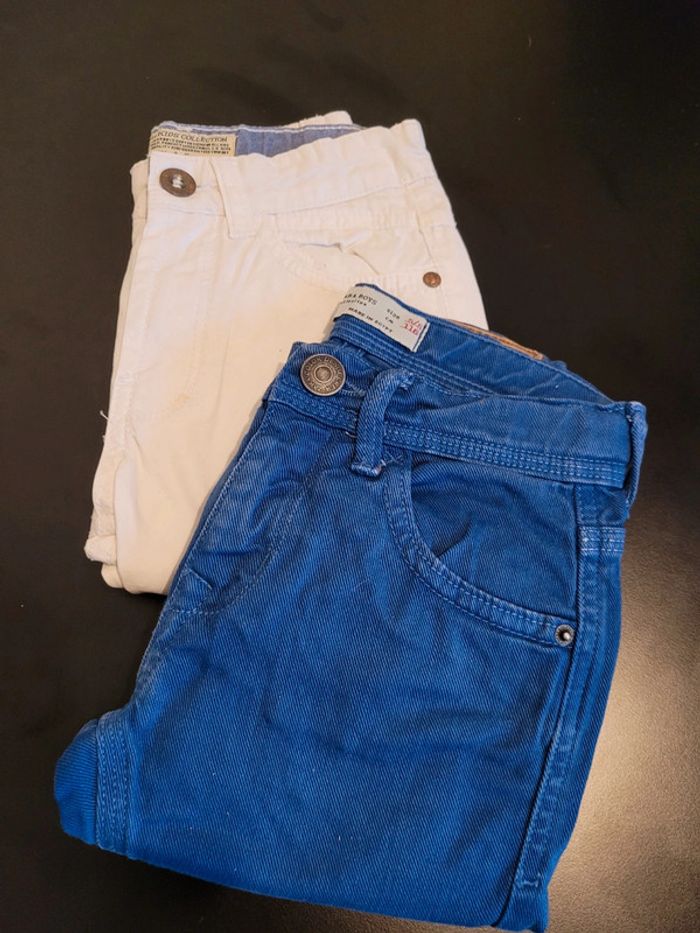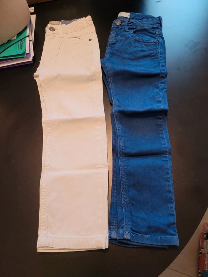 Lot de 2 pantalons 4/6 ans Zara. Présence d'une petite tâche peu visible sur le pantalon blanc : cf dernière photo. #jeannegomez_pantalon_enfants #jeannegomez_zara