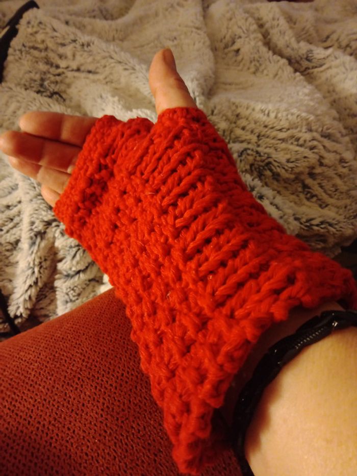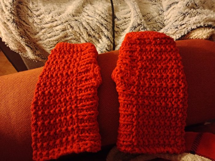 Mitaines tricotées main en laine coton doublé , longueur 19 cm. Largeur 10 cm. Neuves jamais portées. Modèle inventé.