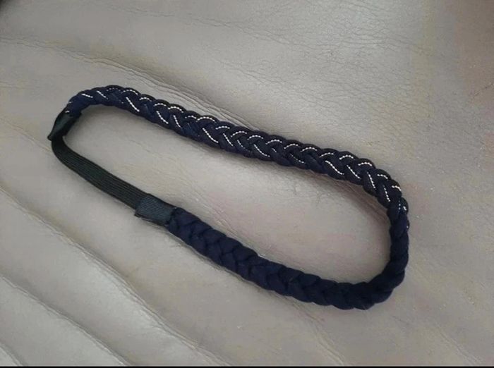 Headband avec un côté élastique. Tresse bleu marine avec filet doré. Neuf, jamais porté. Je le vends au prix de 10 euros. #Accessoiresmarine