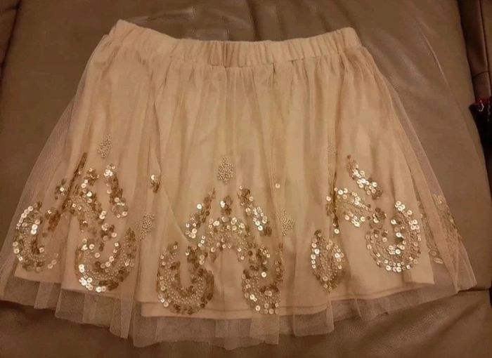 Jupe couleur champagne, avec tulle et paillettes. Taille M. Pas portée. Très mignonne. Elle est courte. Je la vends au prix de 10 euros. #TailleM38marine