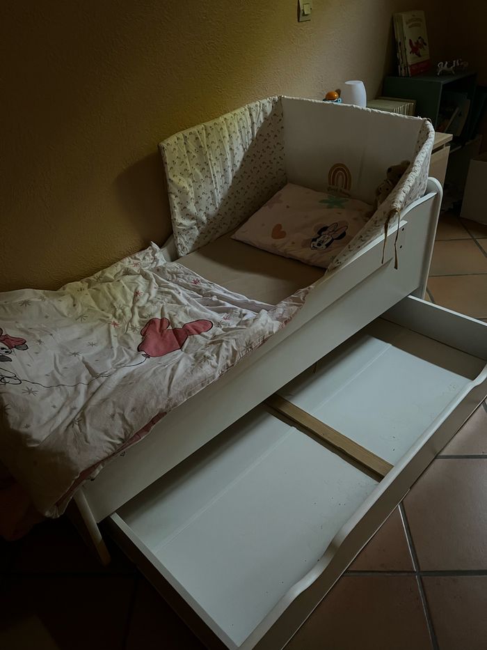 Lit enfant très bon état avec matelas , housse de couette Disney x2 et taies d’oreiller 70€