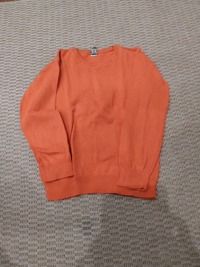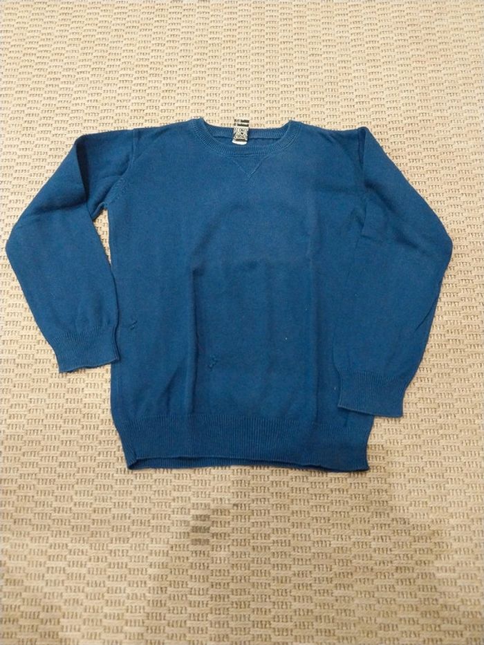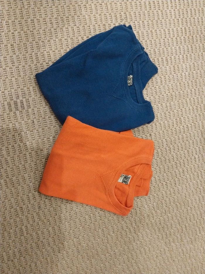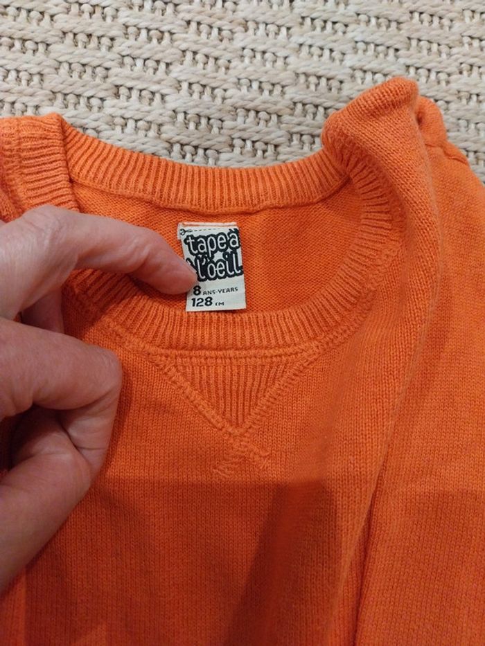 Lot de 2 pulls fins col rond 8 ans 1 bleu et 1 orangé Tape à l'œil 2 acros sur le pull ɓleu 📷