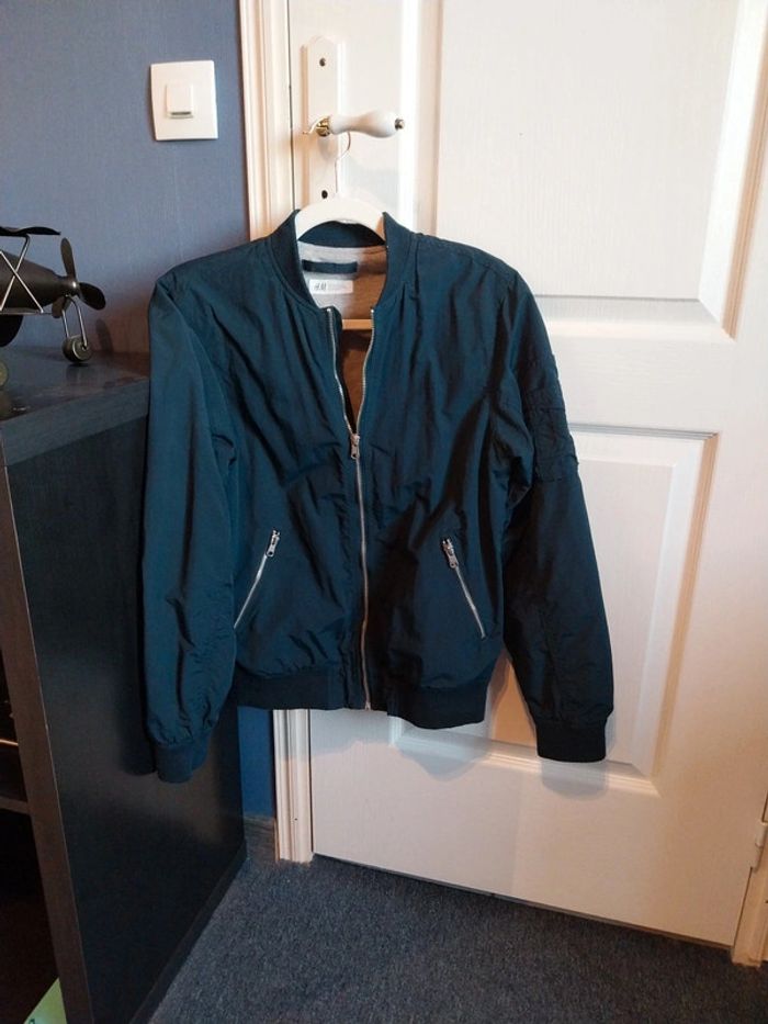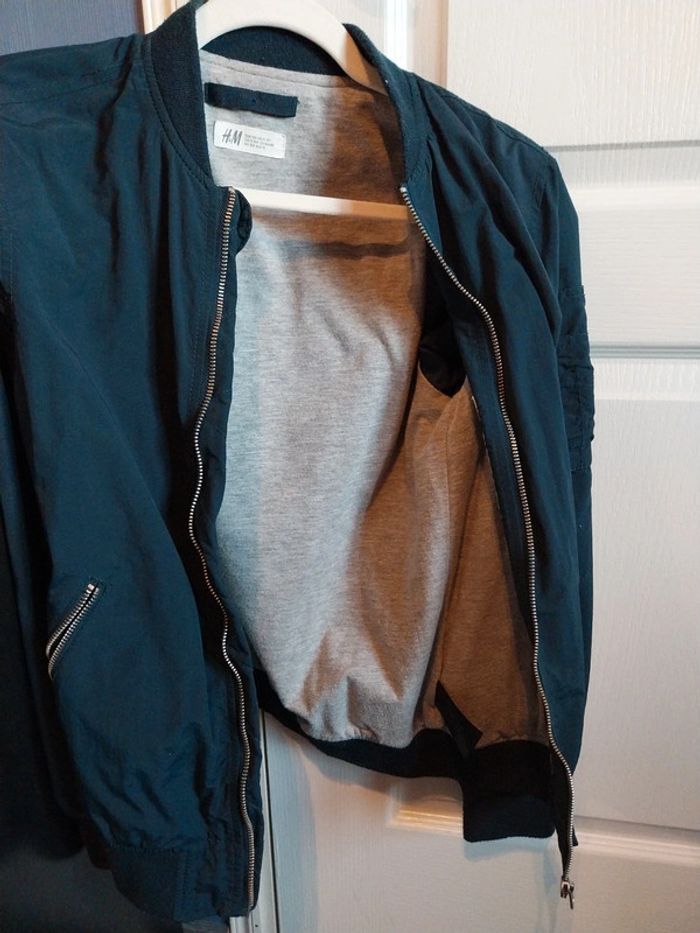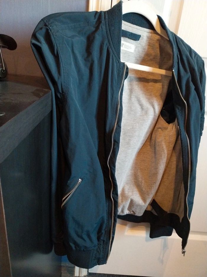 Veste courte 12/13 ans H&M Intérieur coton gris et extérieur bleu nuit