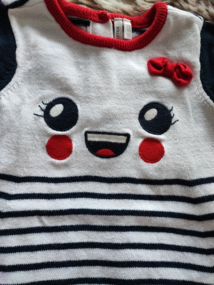 Robe pull blanche et marine 100% coton De la marque orchestra en taille 12 mois En très bon état / maison non fumeur #laetitia33700filledouzemois