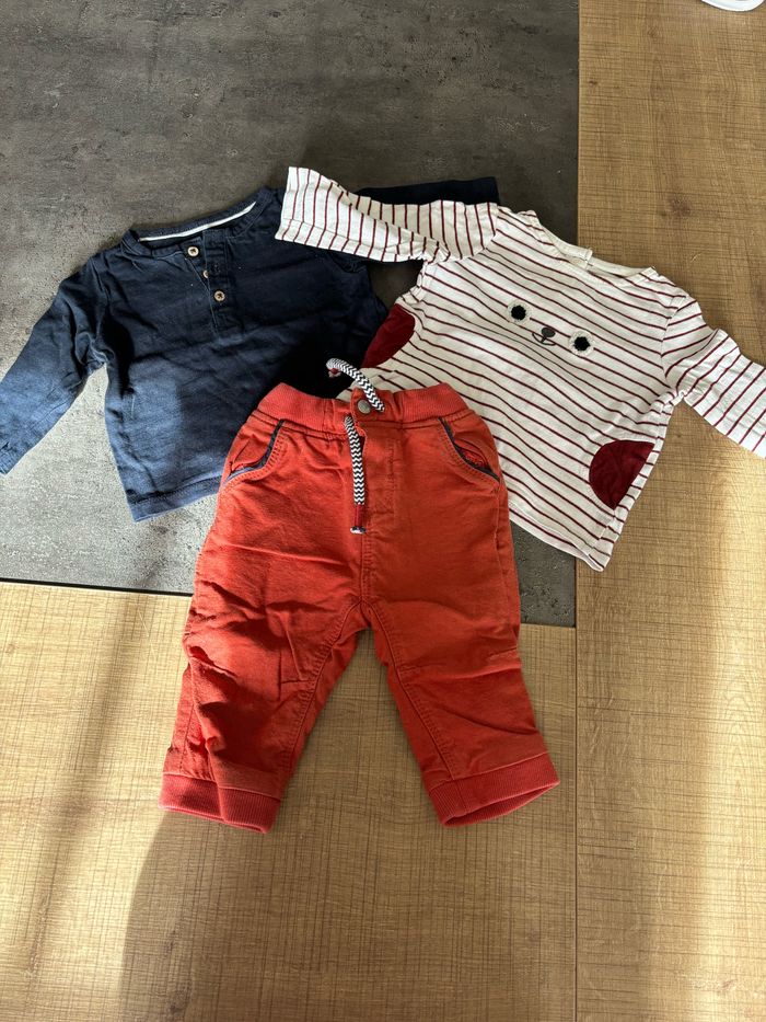 3 tenues de différentes marques : gemo, Obaïbi, kiabi et mots d’enfants en parfaite état.