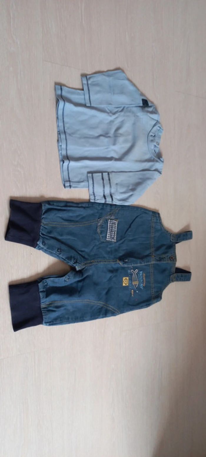 Lot de deux articles faisant un joli ensemble - 1 Tee-shirt manche longue (entre bon état et très bon état) - 1 salopette en très bon état Taille 6 mois Marque les bébés sont comme ça #nanadoucik_garçon6mois