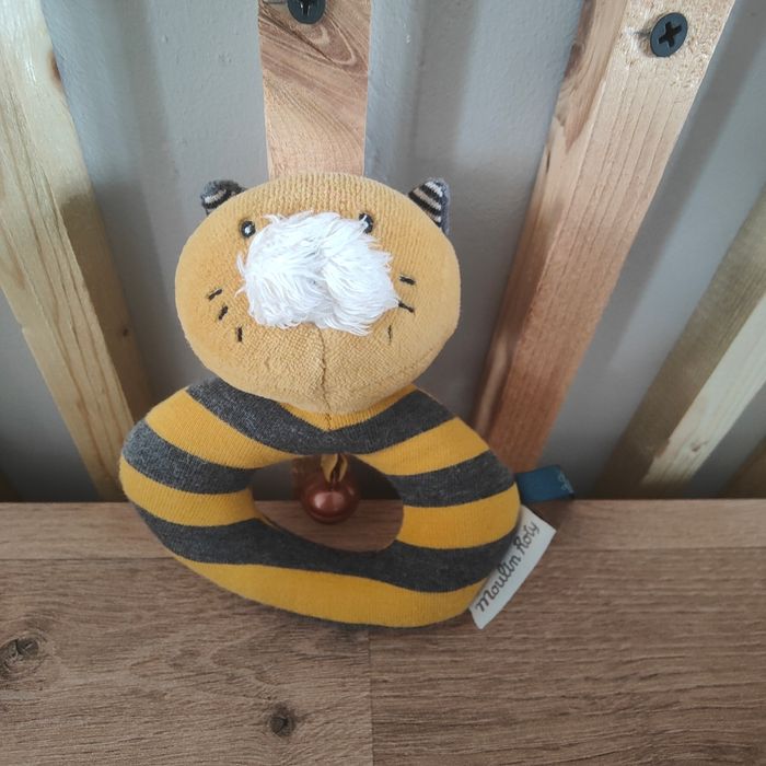Anneau-hochet chat moutarde Lulu Les Moustaches Moulin Roty Tbe Étiquette marque et collection présente 7 euros Envoi en relais