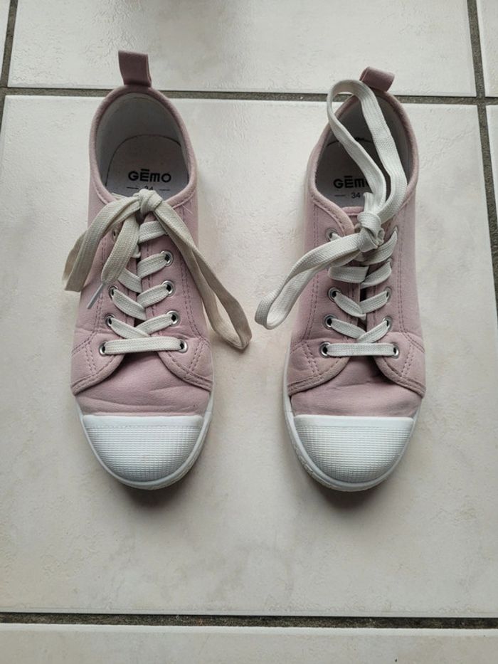 baskets en toile rose pointure 34 gemo lacets
