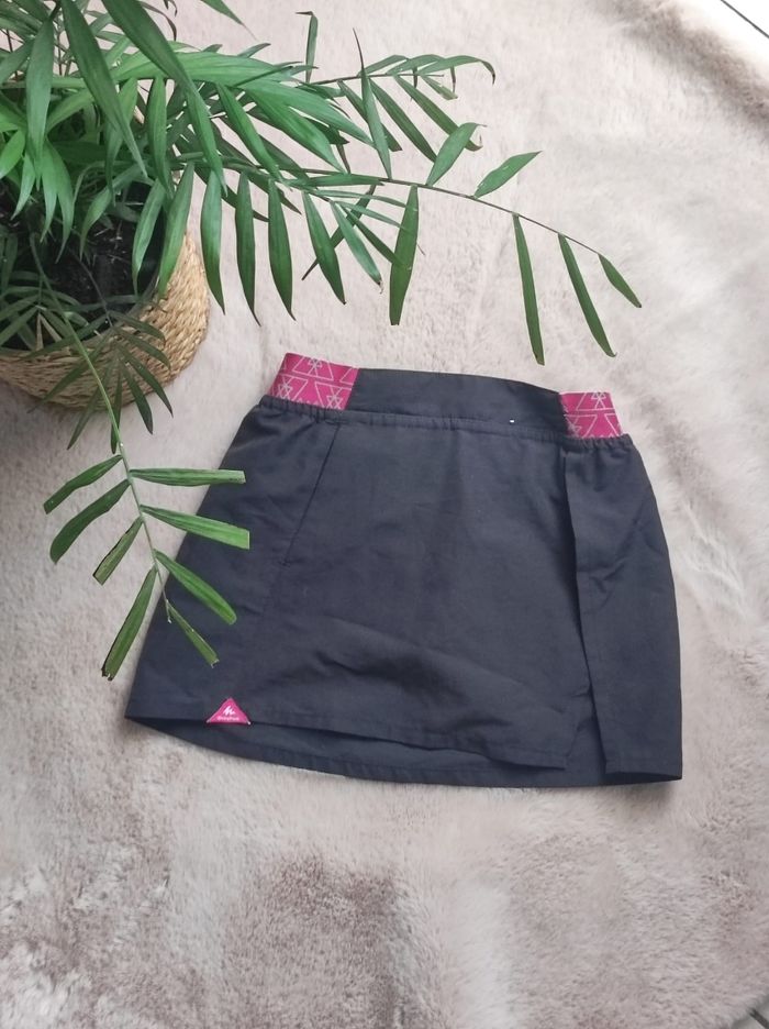 Jupe/short de randonnée en taille 8ans de chez Decathlon gamme Quechua. Léger avec une poche côté droite et fendue côté gauche, matière extérieure en polyester pour un séchage rapide. Élastique à la taille pour une bonne adaptation à la morphologie de l'enfant.