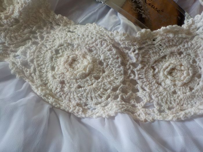TUNIQUE BLANCHE DOUBLEE MANCHES BALLON LIEN DE SERRAGE DANS LE DOS ENCOLURE AVEC BRODERIES MARQUE : CERISE Taille 4 Neuve avec étiquette Merci de vous référer aux mesures ci-dessous Large encolure : 28 cm Largeur épaules : 44 cm Largeur poitrine : 51 cm Longueur épaule/bas de la tunique : 83 cm