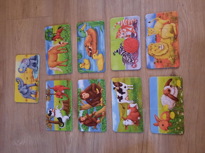 9 paires de cartes-puzzle thème des animaux et leurs petits très bon état