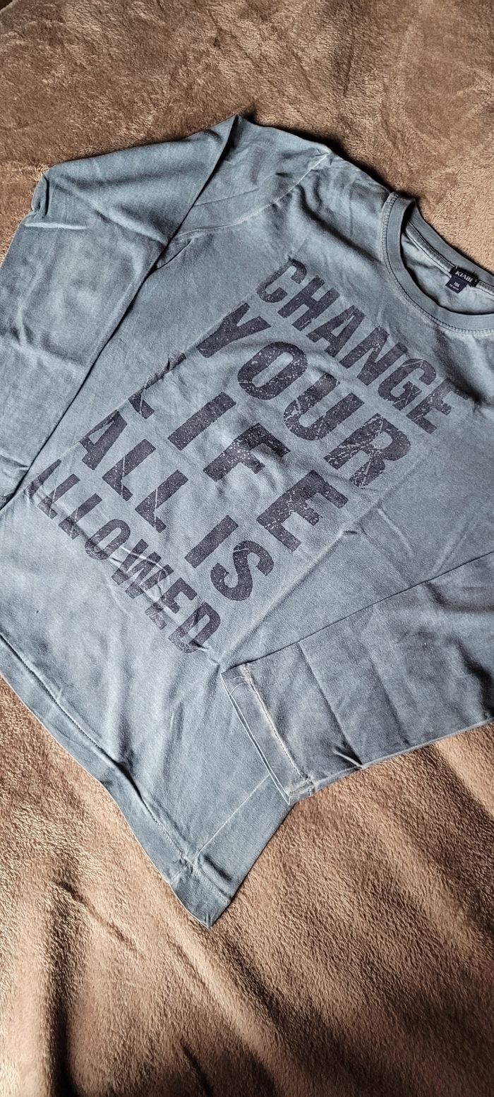 Maillot manches longues Gris / Bleu Kiabi 10 ans Petit trou au niveau de la couture voir photo