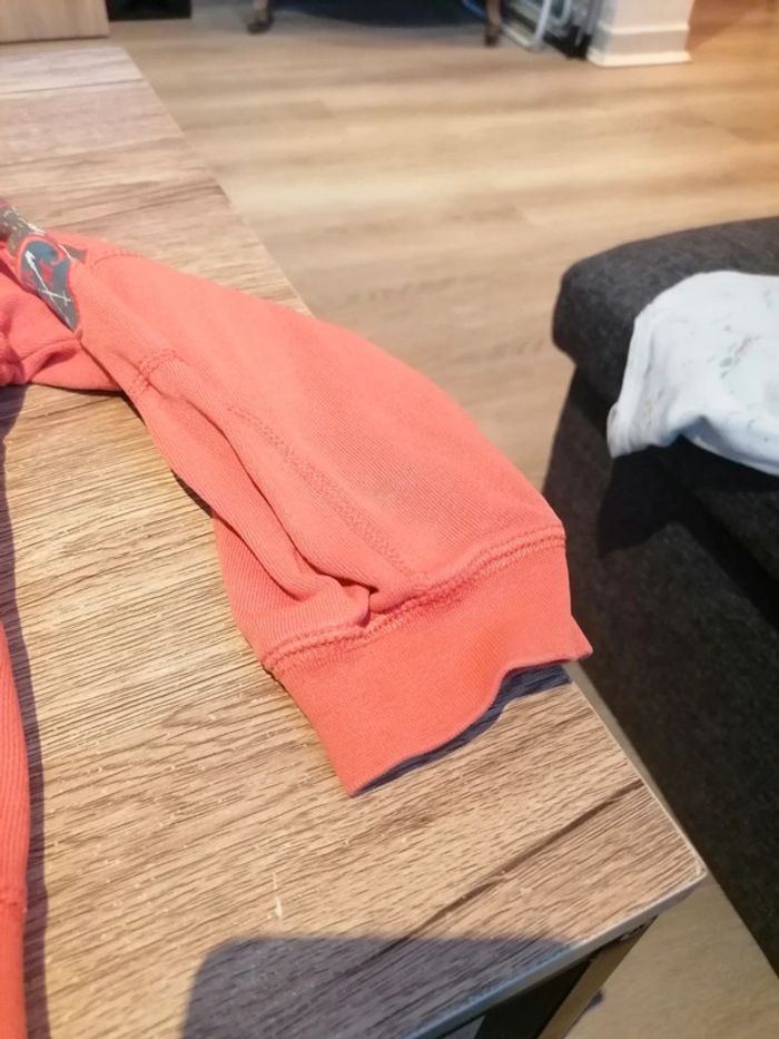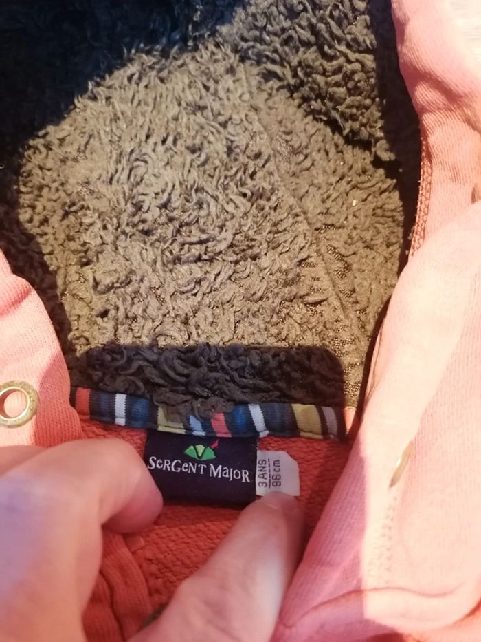 Bonjour, je vends ce gilet à capuche orange de la marque Sergent major taille 3ans en très bon état. Lavé maison non fumeur.