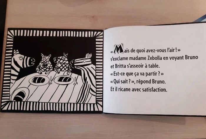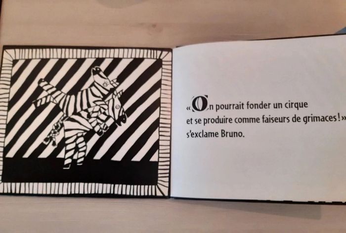 Album illustré en noir et blanc. Excellent état sauf 2 angles. Bruno s'ennuie. Son amie Britta est absente, il n'y a rien à la télé et il pleut. Britta sonne à la porte. Il n'en faut pas plus pour que la joie revienne.