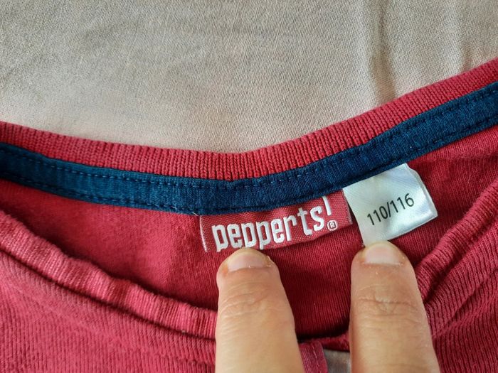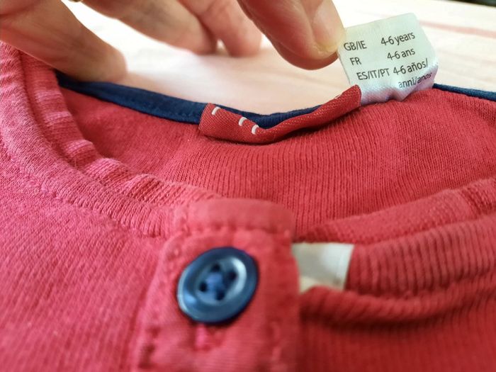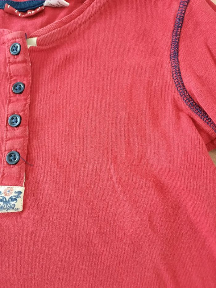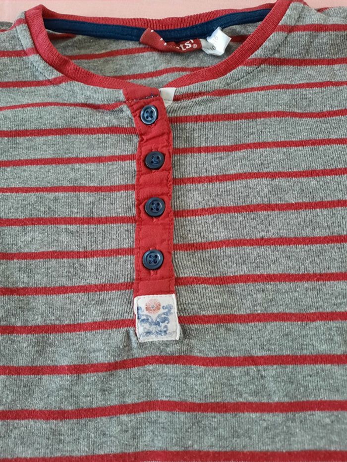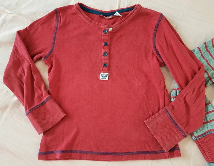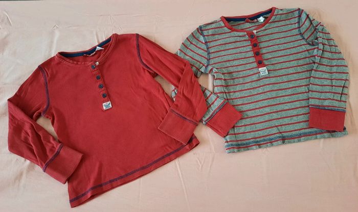 Lot de 2 t-shirts rouge et gris/rouge à rayures, manches longues. En bon état ( 2 pointes de crayon devant sur le rouge et le logo du gris sous les boutons est un peu décoloré), cf photos. Taille 4-6 ans/ 110-116 cm