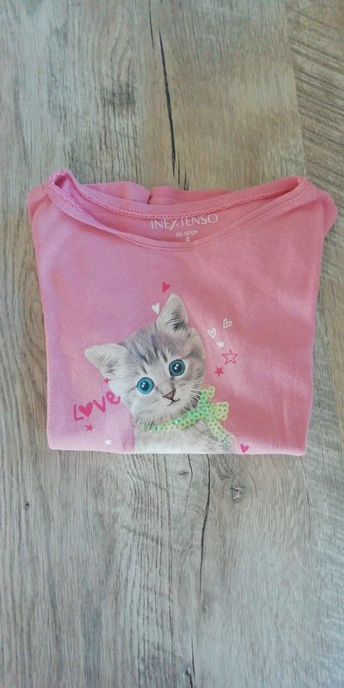 T-shirt à petites manches, rose avec motif chaton devant. Très bon état. Taille 4 ans