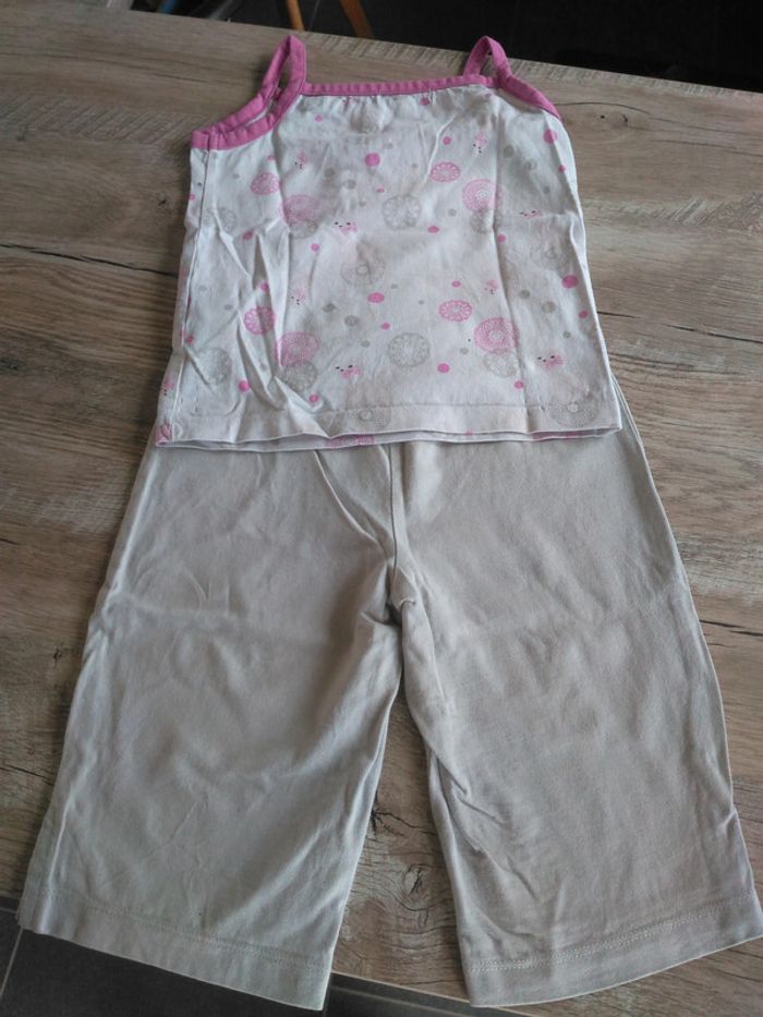 ensemble comportant 1 pantacourt beige et 1 débardeur assorti. Taille 3 ans ( 94 cm). En très bon état.