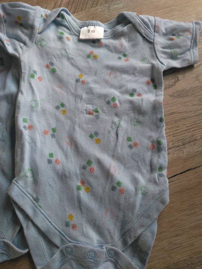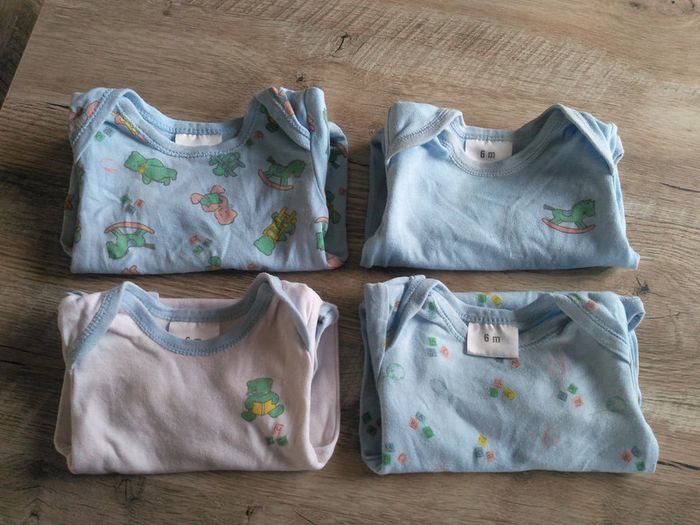 Lot de 4 bodys en très bon état, taille 6 mois.