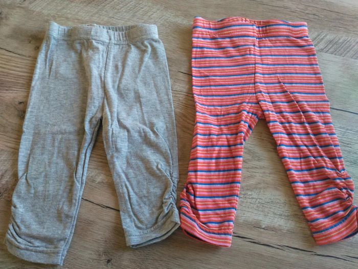 Lot de 2 leggings bébé en très bon état. Légèrement froncés en bas des jambes. Taille 6 mois