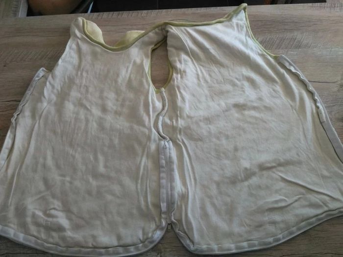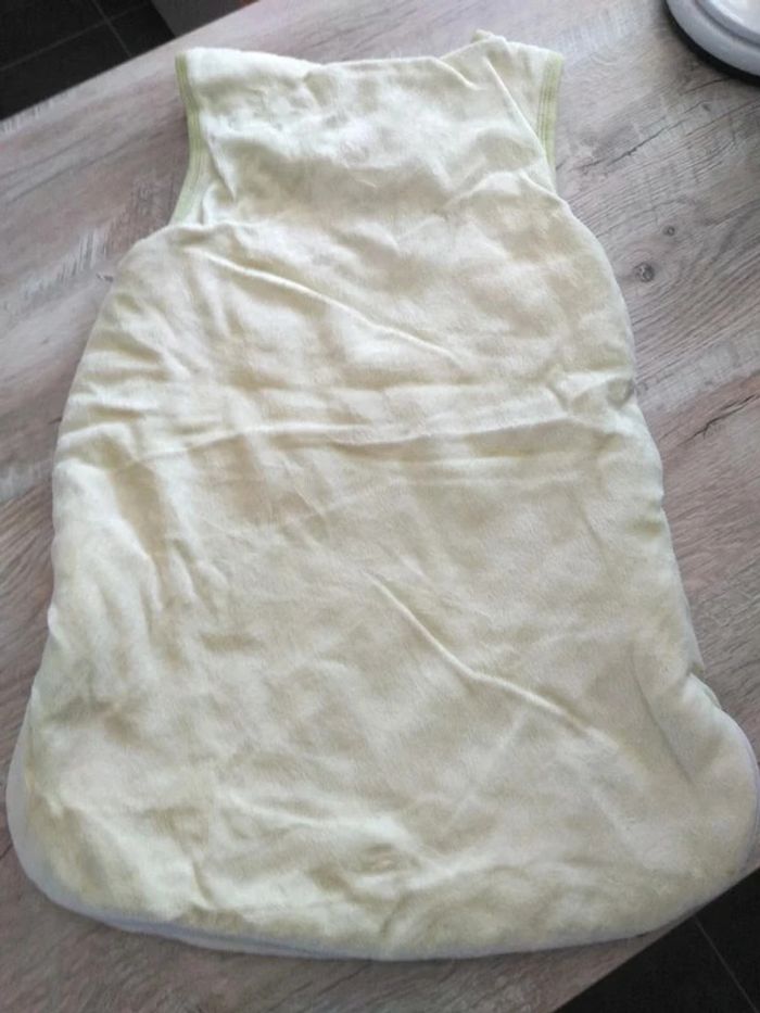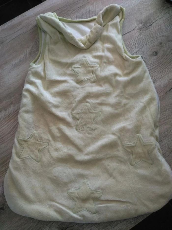 Gigoteuse vert pâle avec motifs étoiles et son bonnet assorti, en très bon état. Idéal nouveau né car longueur 55 cms.