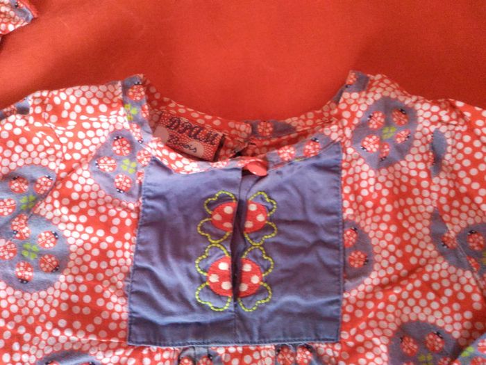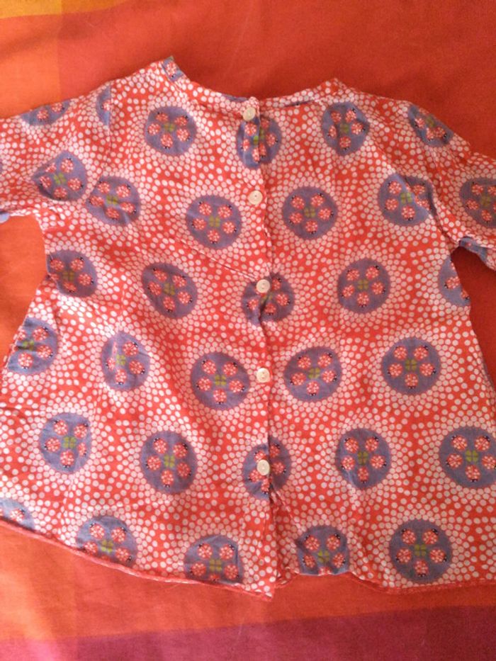 Blouse manches longues, avec motifs coccinelle. De couleur bleu, blanc et rouge. Taille 23 mois.