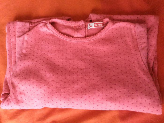 Pyjama rose 1 pièce, à petits pois. Marque: Du pareil au même Taille 23 mois.