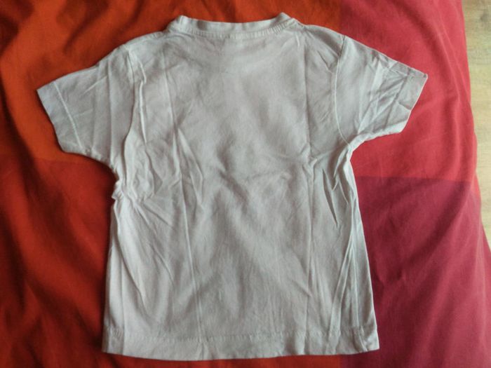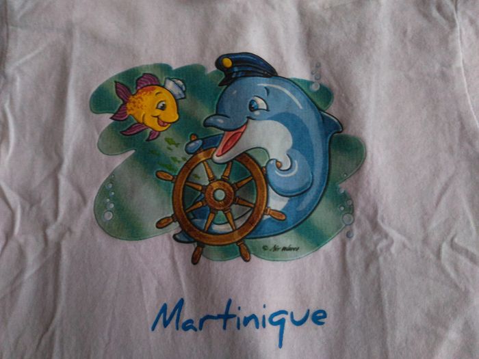 T-shirt blanc avec grand motif dauphin/ poisson de Martinique. En très bon état. Taille 2 ans.