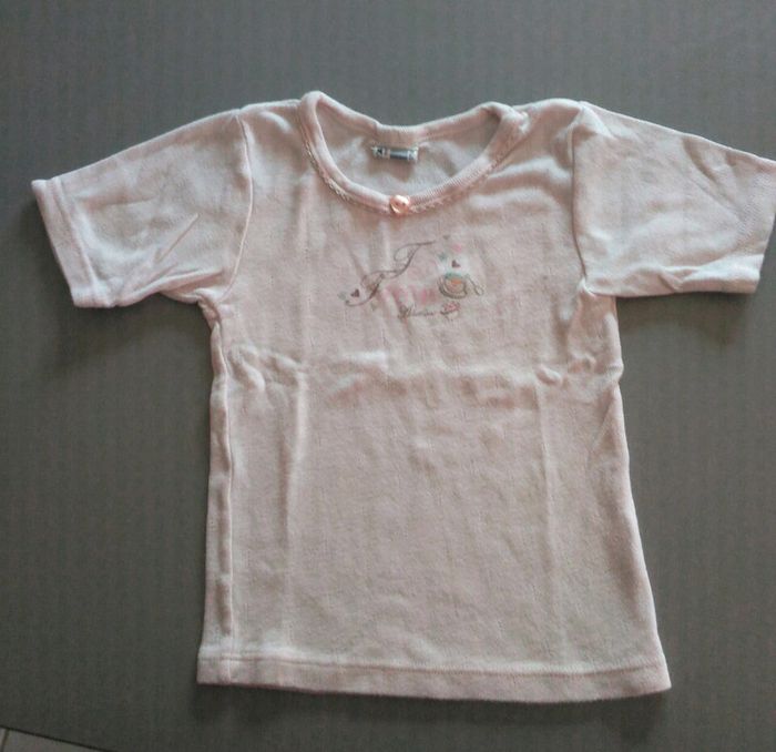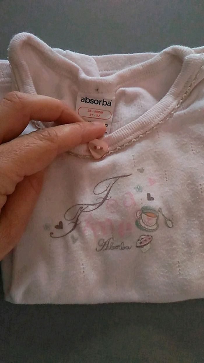 Maillot de corps rose pâle avec inscription et dessins " tea time". Marque absorba, 2 ans.