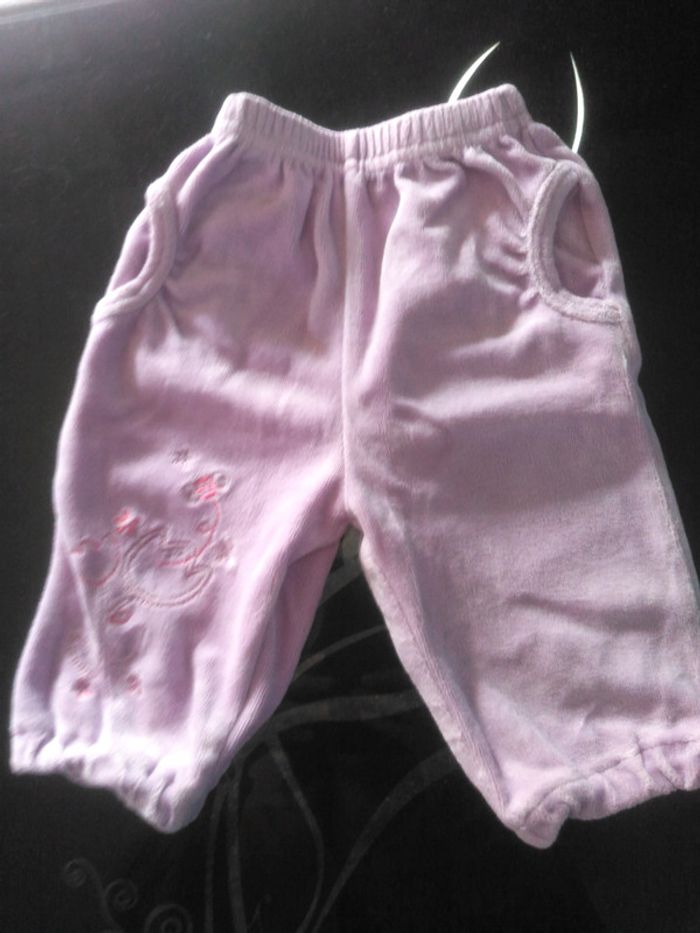 Pantalon tout doux violet clair avec motifs. Taille élastique. Taille 3 mois.