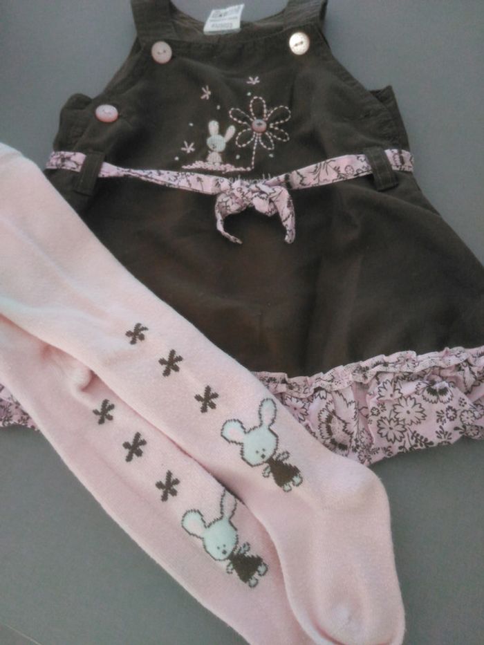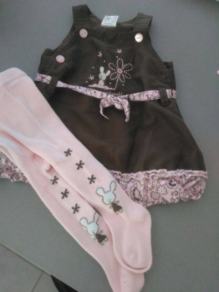 Joli petit ensemble comprenant une robe et collant assorti. Taille 6 mois.