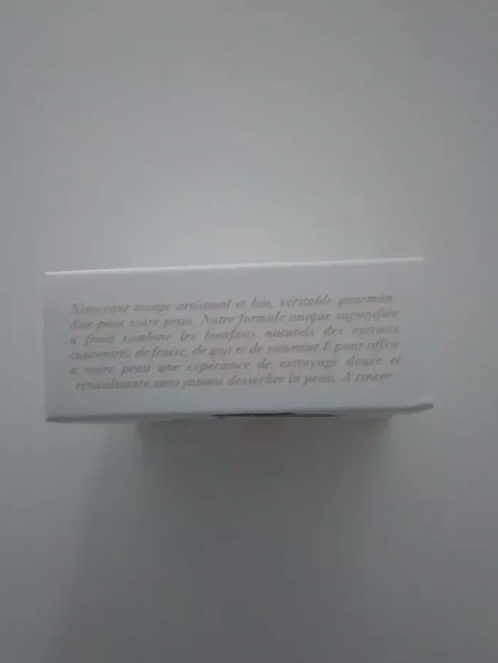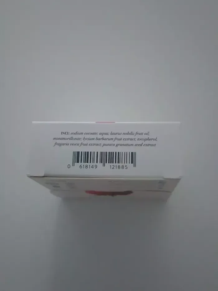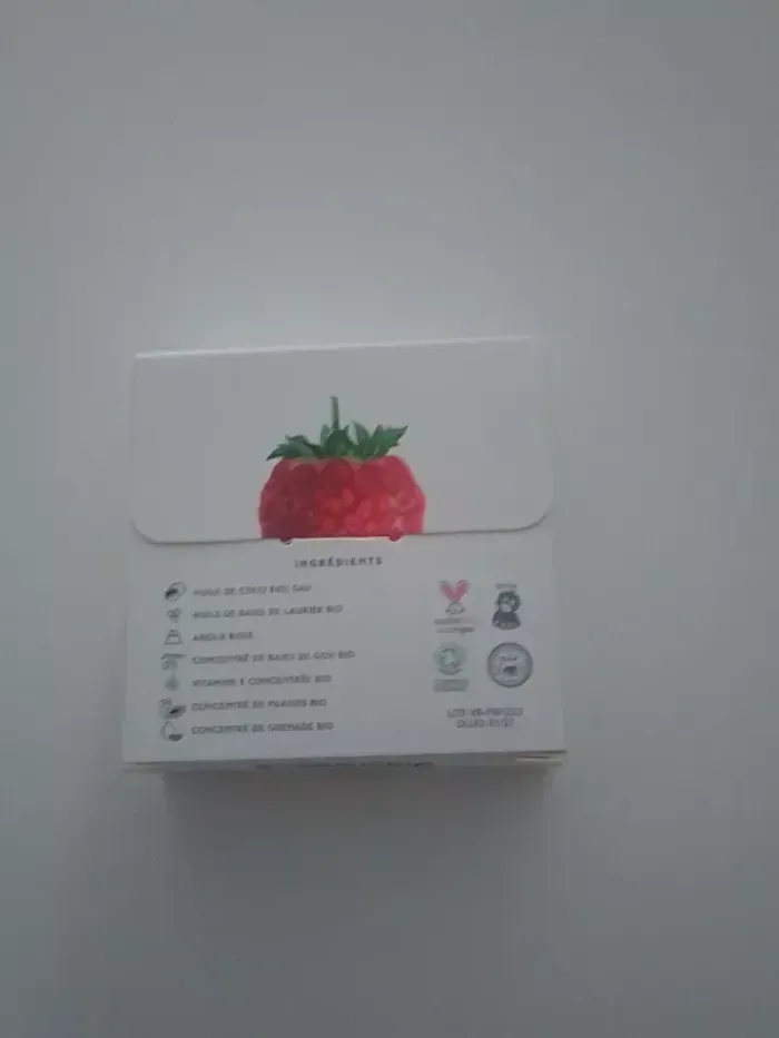 Nettoyant visage Solide- Very Berry - 50g- Neuf - Nettoyant visage artisanal et bio, véritable gourmandise pour votre peau. Notre formule unique saponifiée à froid combine les bienfaits naturels des extraits concentrés de fraise, de goji et de vitamine E pour offrir à votre peau une expérience de nettoyage douce et revitalisante sans jamais dessécher la peau. huile de coco bio | sodium cocoate huile de baies de laurier bio | Laurus nobilis leaf oil Argile rose | Montmorillonite Concentré de baie de goji bio | Lycium barbarum fruit extract Vitamine E concentrée bio Concentré de fraise bio | Fragaria vesca fruit extract Concentré de grenade bio | Punica Granatum Extract Lavage du visage: Mouiller d’abord le visage. Masser le savon entre les mains ou appliquer le pain directement sur le visage, en évitant le contour des yeux, puis rincer. Pour une routine complète, terminer avec nos sérums solides ou une huile pour le visage. Pour un rasage: Faire mousser le savon soit entre les mains soit directement sur la peau humide ou avec un blaireau, et raser délicatement à l’aide de la mousse. Renouveler si la mousse n’est pas suffisante.