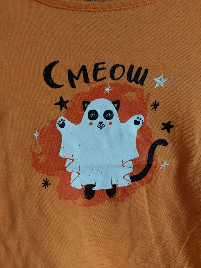 Manches longues Chat "fantome" sous un drap Inscription "MEOW" Très peu porté