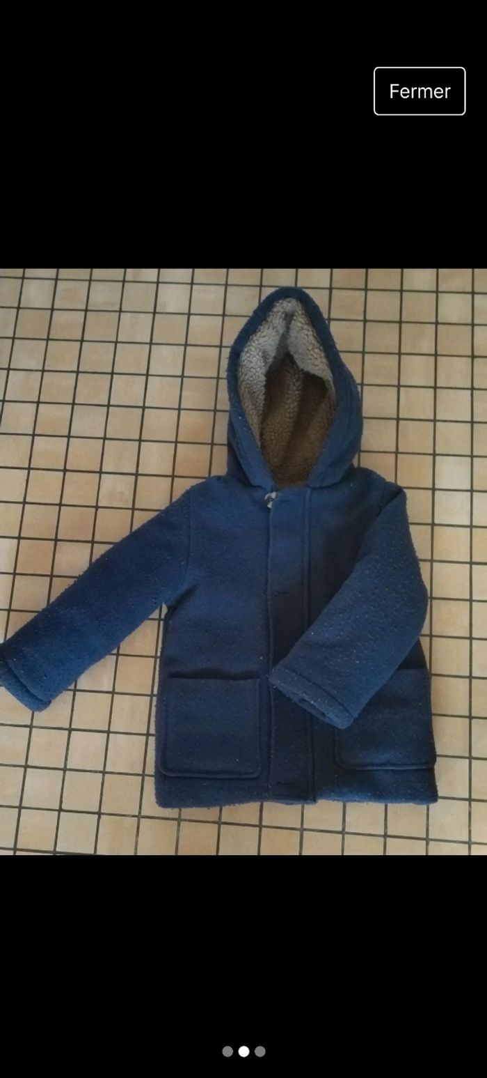 Manteau kiabi 4ans Très bon etat Fermeture et boutons Le nom de mon fils sur l'étiquette