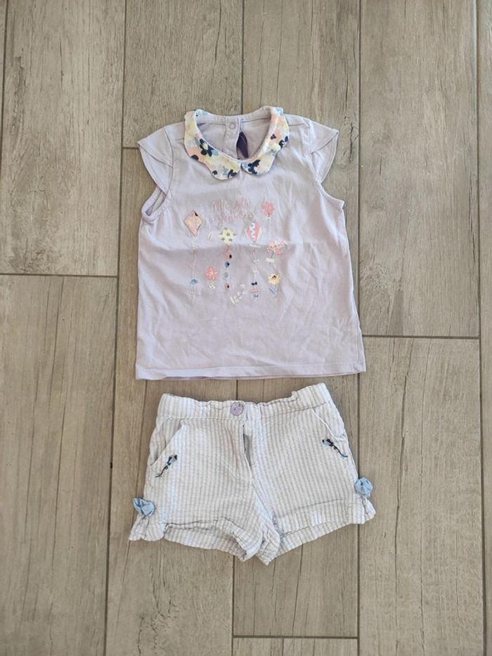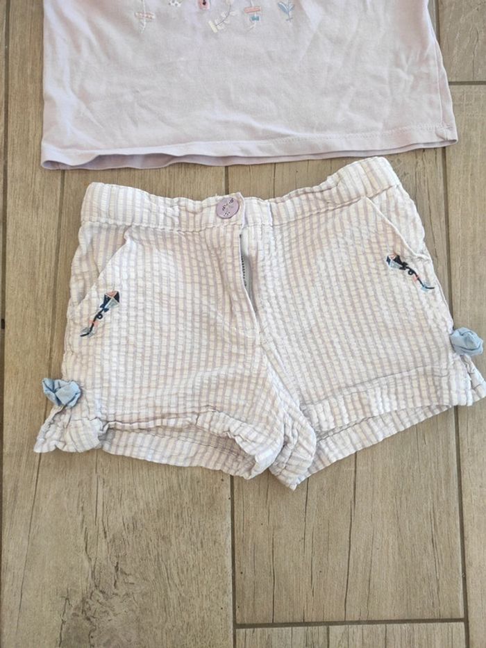 Ensemble fille en 4 ans de marque Sergent Major, short et débardeur à col claudine. A noter : légère trace de décoration voir dernière photo