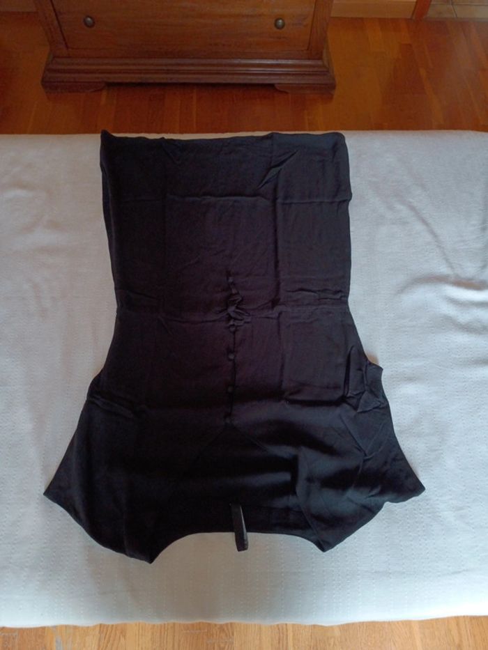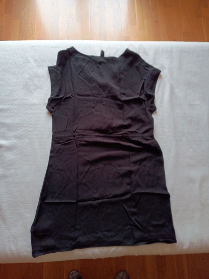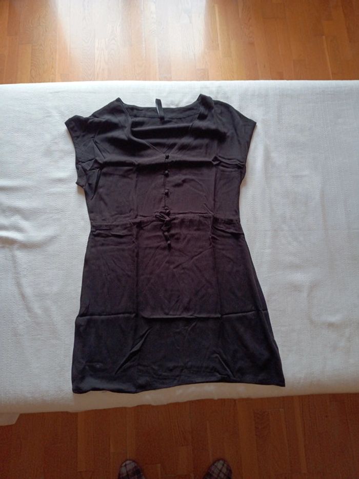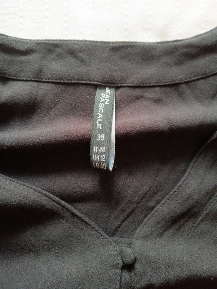 Robe noire Jean-Pascale taille 40 Le tissu est bien noir c'est le rendu de la photo qui est parfois mauvais elle n'est pas du tout délavé. Longueur 79 centimètres.