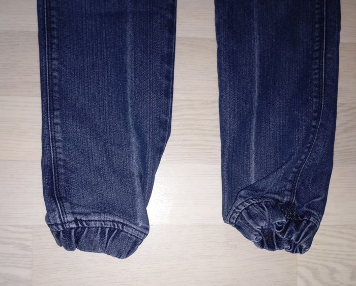 Jeans bleu denim avec bas des jambes élastiqués Marque : Tissaia T. 10 ans Très bon état général