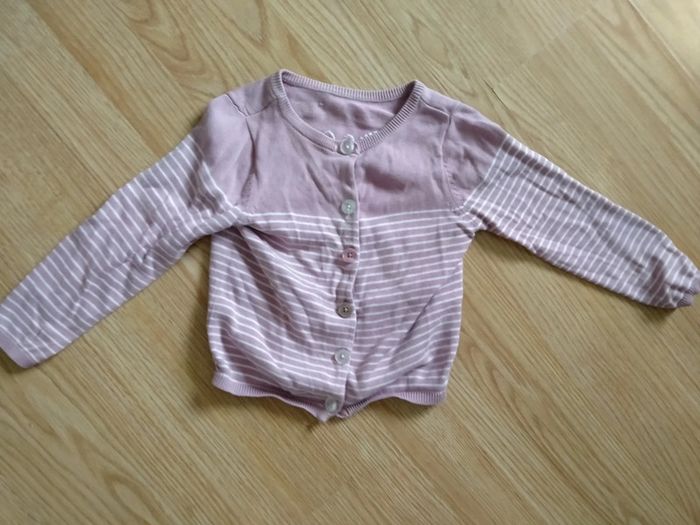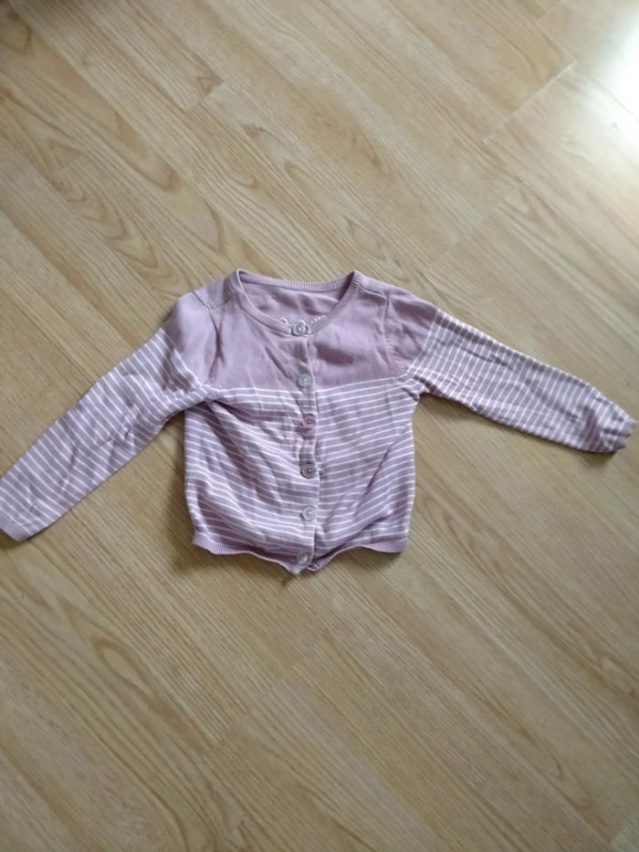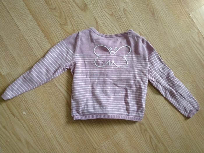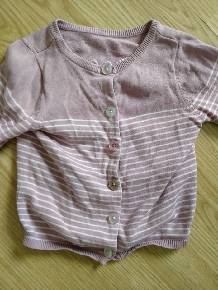 Gilet manches longues. mauve et blanc. Vertbaudet. Taille 4 ans Mauve rayures blanches, papillon dans le dos. 1 bouton de différente couleur. Bon état. Lavé avec lessive bébé Maison non fumeur 1 Euro D'autres articles de cette taille sur #ptitesev63fille4ans