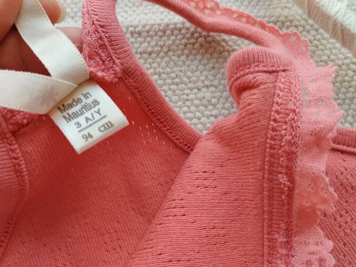 🍂Article : débardeur a bretelles ajouré, col rond dentelle,couleur rouille. 🍄État : très bon état 🍁 Marque: Okaïdi 📏Taille : 3 ans 🪡Matière et mesures: (sur demande) 🚭Maison NON fumeur 🤎Pas de surprise caché, vous recevrez ce que vous commandez, tout les défauts son dans les photos ou dans le descriptif 📦Envoie rapide et soigné, je fais des envois 2 ou 3 fois par semaine, du mardi au samedi ❔Si vous avez des questions n'hésitez pas à les poser je répondrai dans les plus brefs délais 🧺Tout les vêtements sont lavés, sèches a l'aire libre pas de sèche linge, repassé, puis stocke a l'abri de l'humidité. Pour trouver plus d'articles dans cette catégorie /taille cliquez sur le lien ci-dessous #ecirdney_3ans #ecirdney_36mois